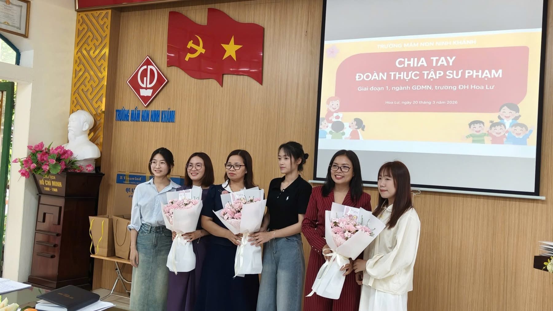 📌Khép lại những ngày tháng học tập và trải nghiệm miệt mài trong lớp học và sân trường, hôm nay thứ 6( 20/3/2026) trường Mầm non Ninh Khánh đã tổ chức buổi chia tay và tổng kết đợt thực tập sư phạm giai đoạn 1 cho đoàn giáo sinh đến từ Trường Đại học Hoa Lư.👏👏👏