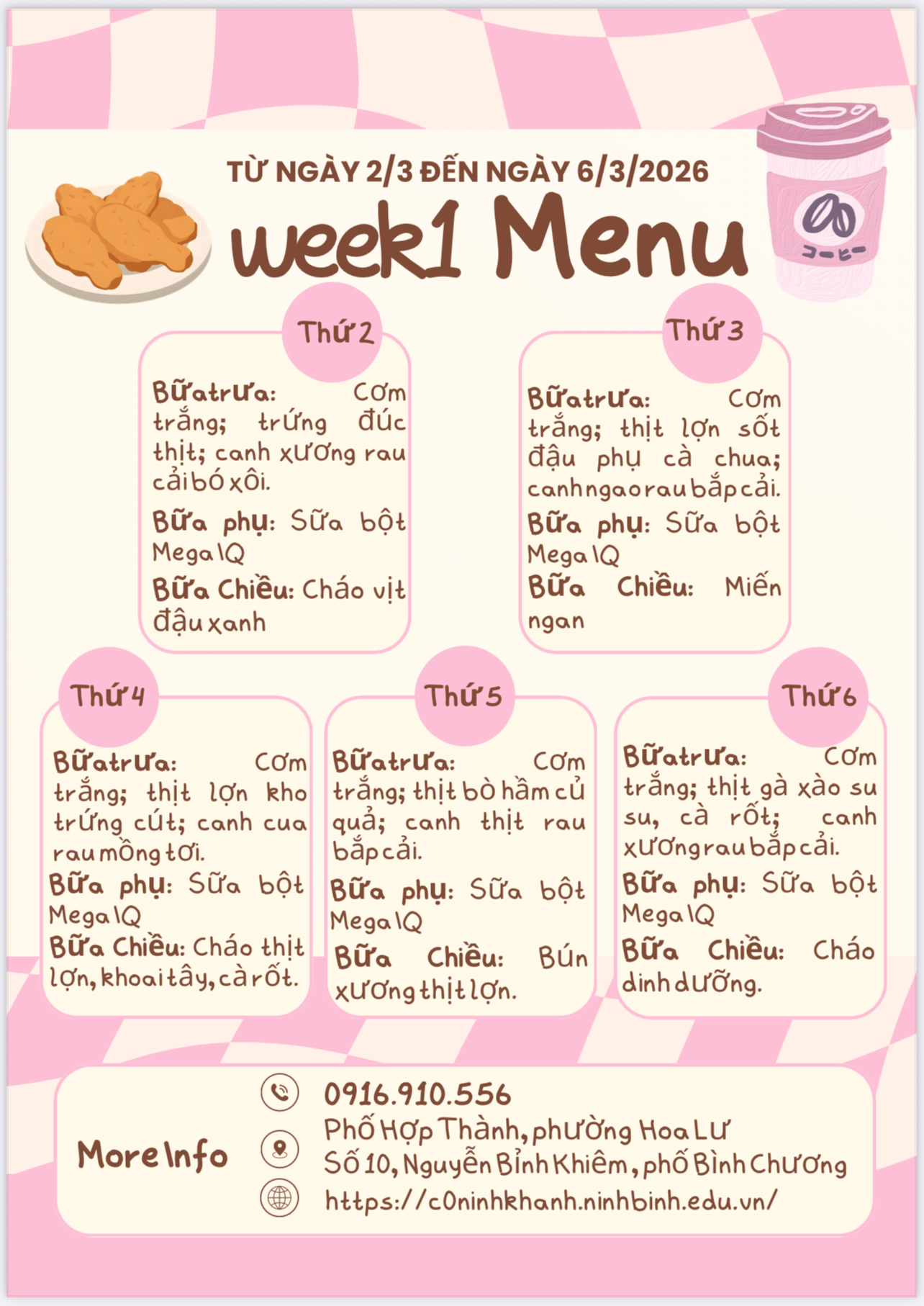 THỰC ĐƠN TUẦN 1 THÁNG 3 NĂM 2026