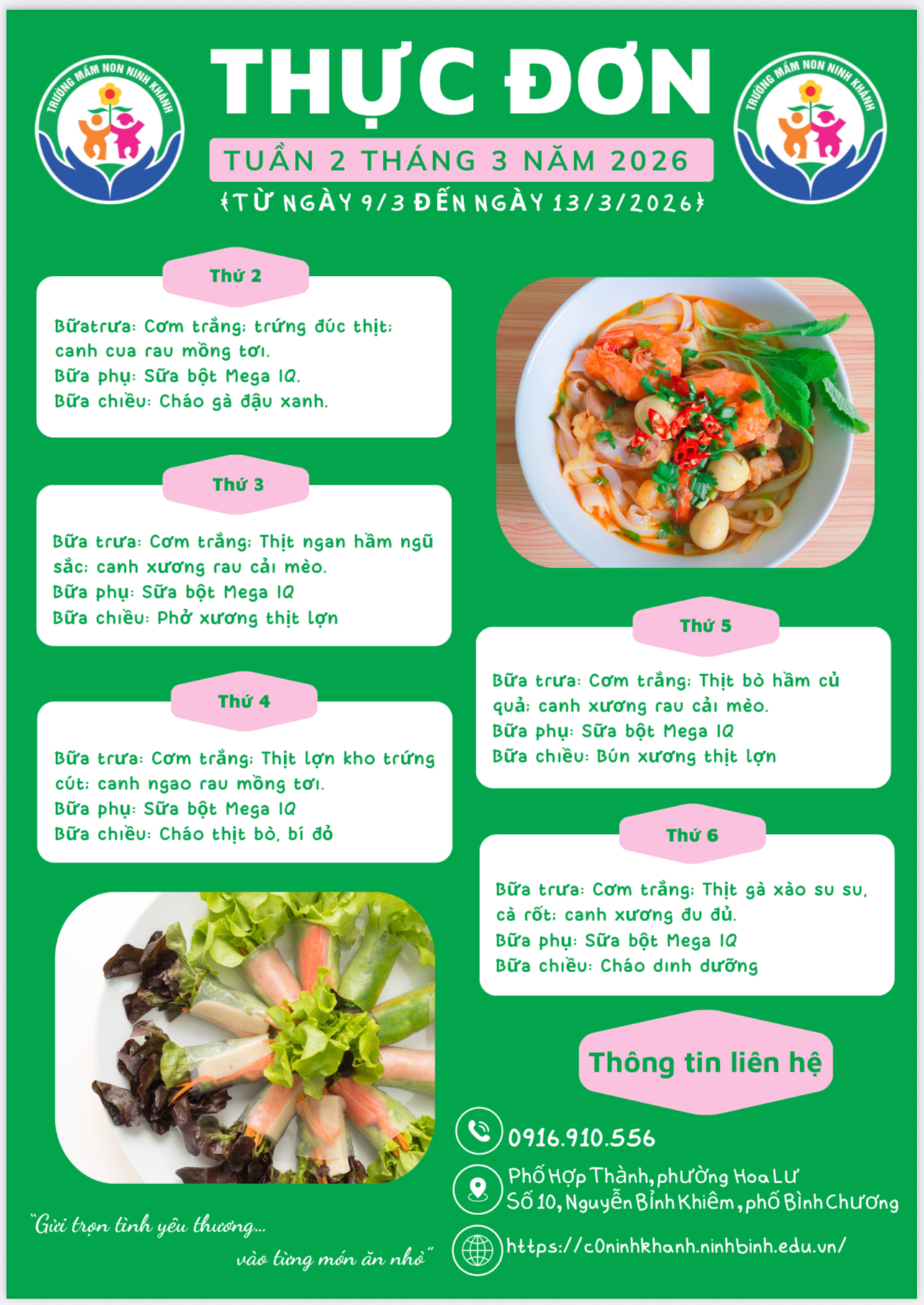 THỰC ĐƠN TUẦN 2 THÁNG 3 NĂM 2026