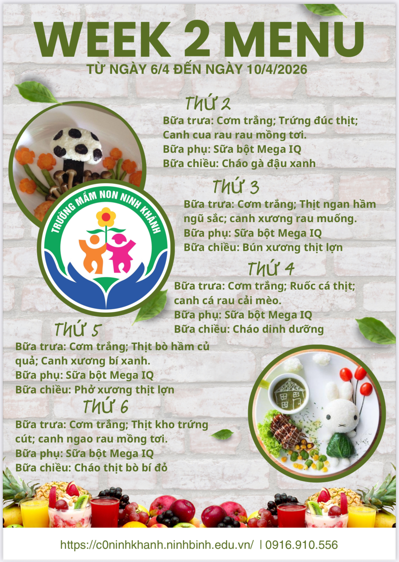 THỰC ĐƠN TUẦN 2 THÁNG 3 NĂM 2026