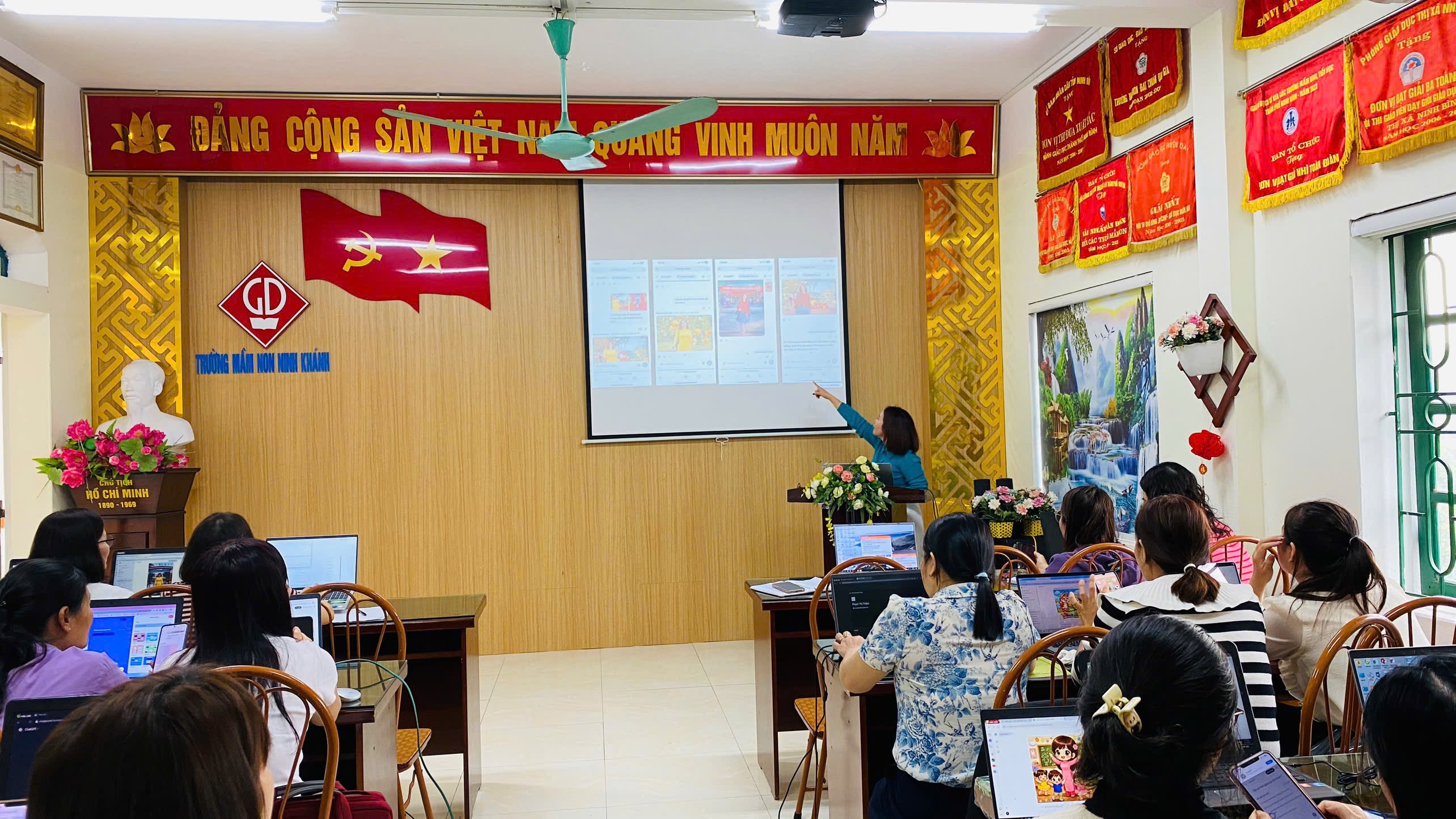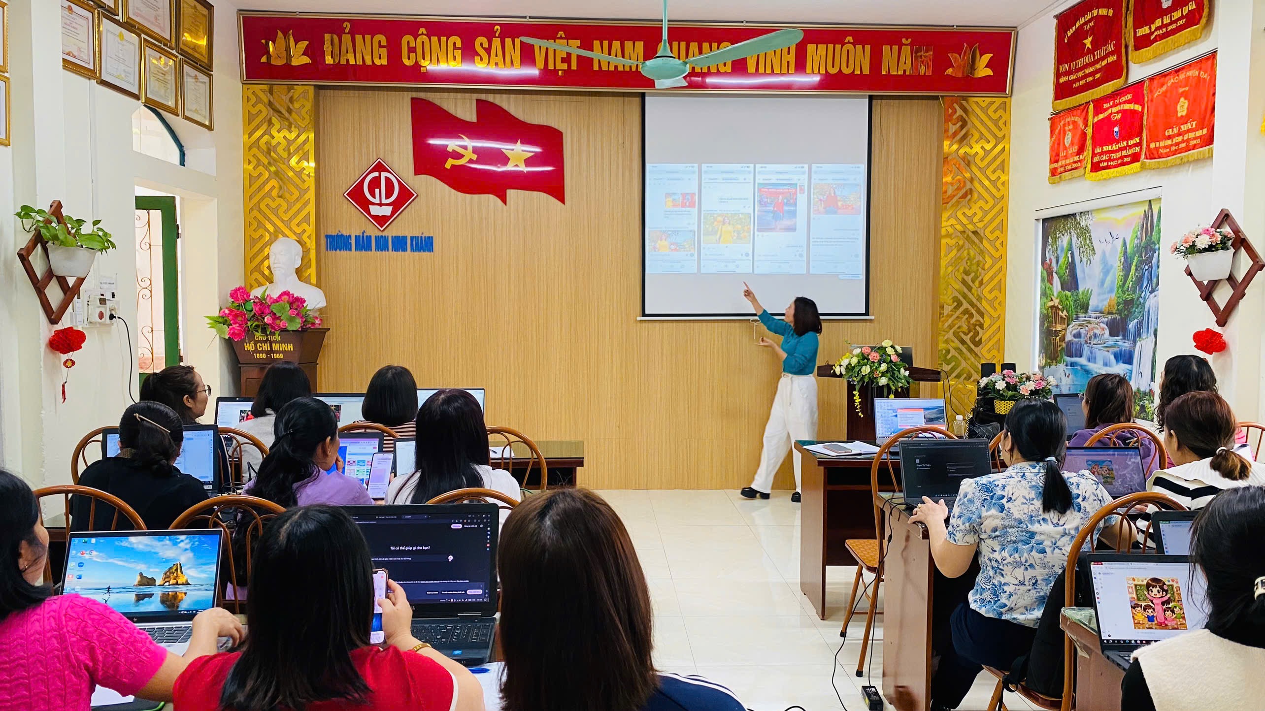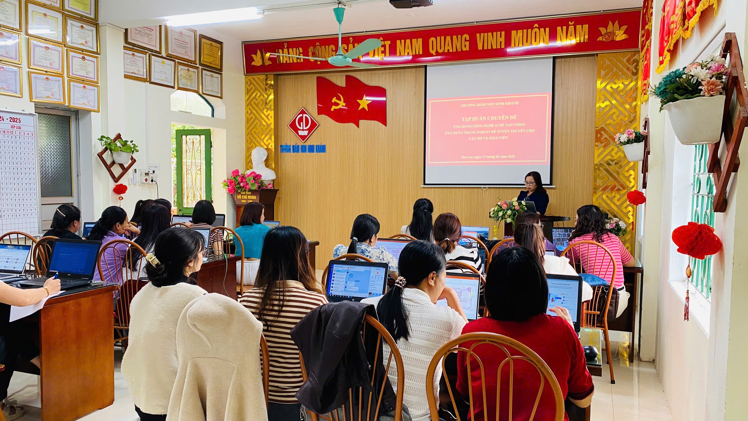 TRƯỜNG MẦM NON NINH KHÁNH TỔ CHỨC CHUYÊN ĐỀ ỨNG DỤNG AI TRONG CHĂM SÓC GIÁO DỤC TRẺ MẦM NON