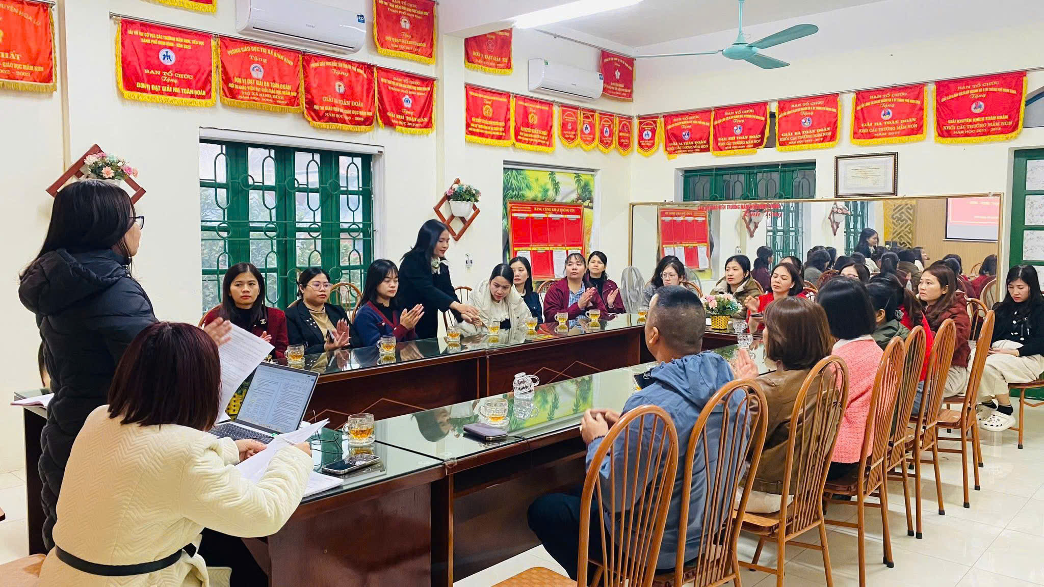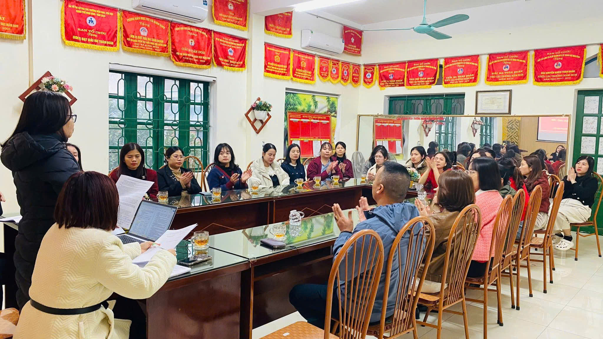 👉 Trong không khí dân chủ, Hội nghị cũng đã được nghe cô Hiệu trưởng và giáo viên chủ nhiệm của từng nhóm, lớp báo cáo công khai, minh bạch các khoản thu- chi. Nhà trường cũng đã lắng nghe những ý kiến đóng góp quý báu từ phía phụ huynh để hoàn thiện hơn nữa công tác chăm sóc và giáo dục. Cùng nhau bàn bạc, thảo luận các nội dung thực hiện trong học kỳ tới, thống nhất một số nội dung điều chỉnh danh mục thu và mức thu, chi các khoản thu dịch vụ phục vụ, hỗ trợ hoạt động giáo dục trong nhà trường theo Nghị quyết số 30/2025/NQ-HĐND ngày 09/12/2025 của Hội đồng nhân dân tỉnh Ninh Bình🇻🇳🇻🇳🇻🇳